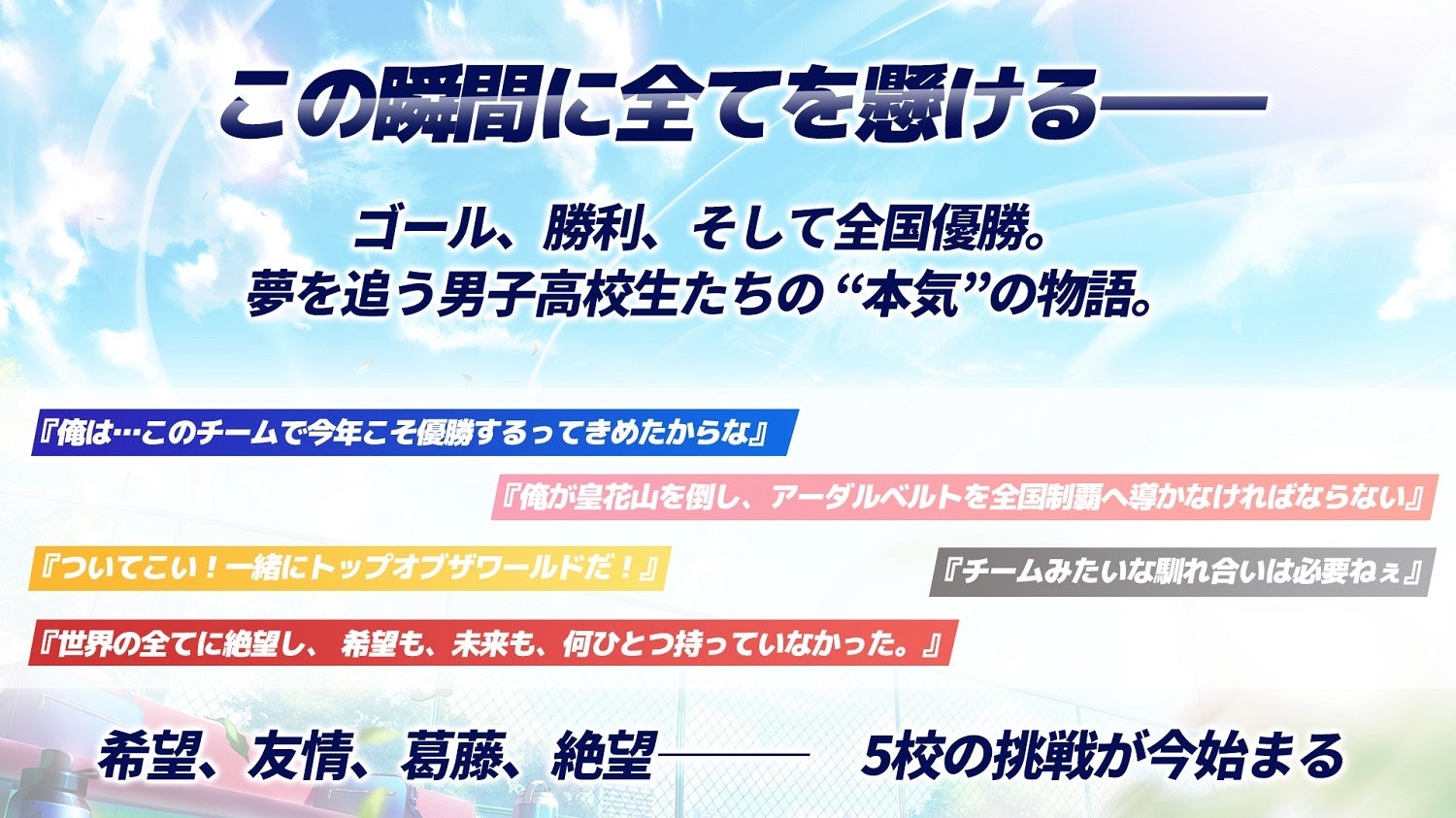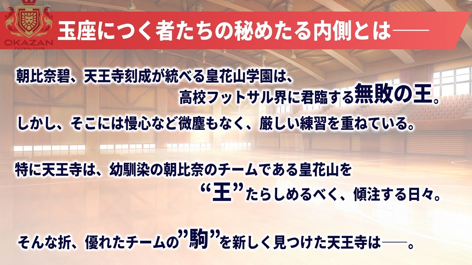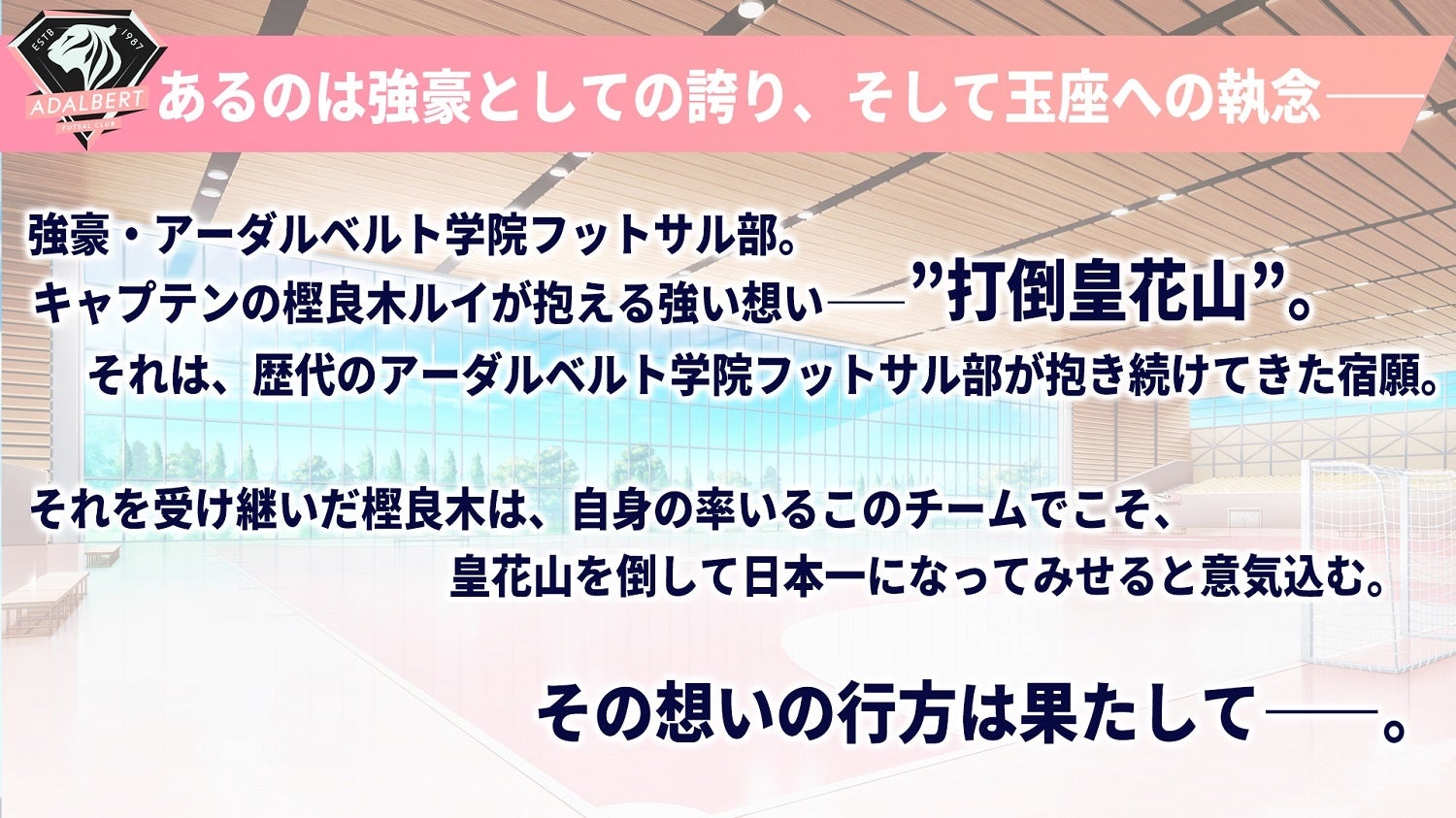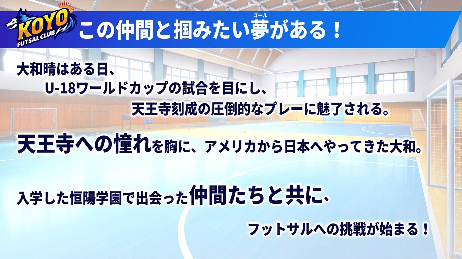 情熱、絆、そして時には葛藤も。選手たちの熱い青春を一緒に追いかけよう!さらに、キャストによるフットサル試合がアプリゲームと連動する新型メディアミックスにも注目!