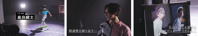 2次元の「ゲーム内選手の決め技映像」と3次元の「出演キャストによる決め技映像」がシンクロした広告となっています。