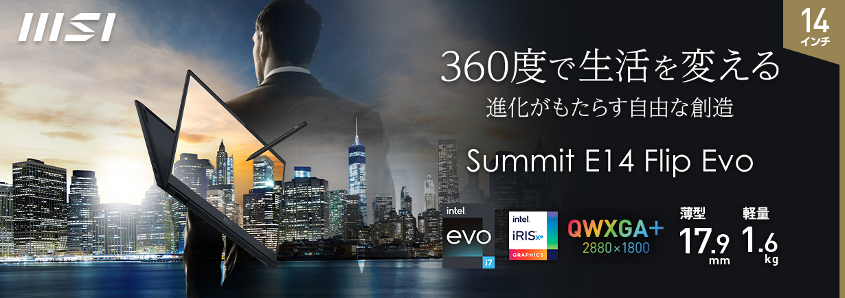 この度、エムエスアイコンピュータージャパン株式会社は、液晶パネルに高解像度・広色域で360度回転できる14インチフリップディスプレイを搭載したハイスペックビジネスノートPC『Summit E14 Flip Evo A12』を2022年3月24日(木)より発売いたします。
