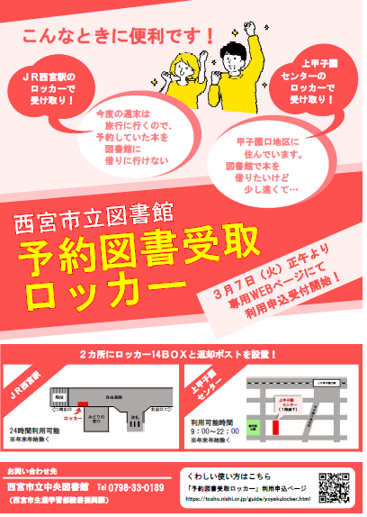 西宮市立図書館「予約図書受取ロッカー」を西宮駅に設置します