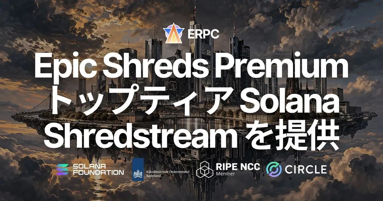 ELSOUL LABO B.V.(本社:オランダ・アムステルダム、代表取締役 CEO:川崎文武)および Validators DAO が運営する ERPC は、Solana Shredstream の最上位ラインナップとなる「Epic Shreds Premium」を本日リリースしたことをお知らせいたします。