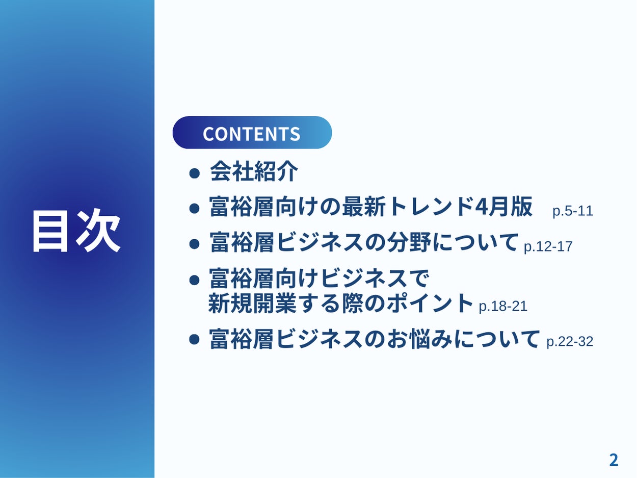本レポートでは、富裕層向けビジネスを新規開業する際のポイントを最新トレンドと共に紹介しています。