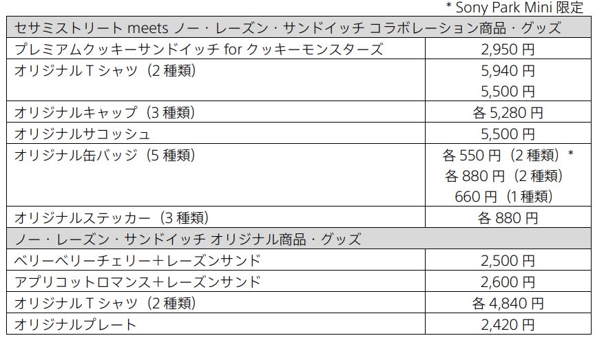 さらに、Sony Park Miniに併設する西銀座駐車場コーヒーでは、クッキーサンドでも使用しているクッキー生地をトッピングしたオリジナルドリンクの提供や、ノー・レーズン・サンドイッチに合うコーヒー豆の販売も予定しています。