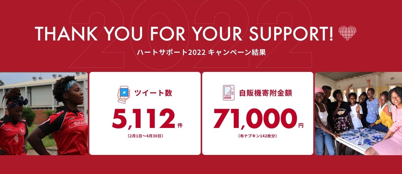 ― チャレンジし続ける世界中の女の子を応援 ―「ハートサポート2022」プロジェクト Twitter&オリジナル支援販売機を通じて、合計5,142枚分の布ナプキン作製支援が決定!