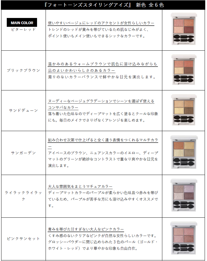 ■ 商品名:『フォートーンズスタイリングアイズ』 新色 全6色 NEW ビターレッド/ブリックブラウン/サンドデューン/サンガーデン/ライラックライラック/ピンクサンセット