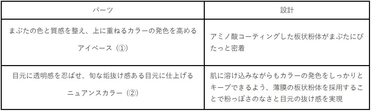 また、動きが多い目元でも、上品なツヤが持続するラスターパール※2を全色に配合。肌そのものを労わりながら、長時間きれいな目元を実現します。