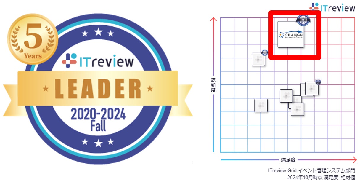 シャノン「SHANON MARKETING PLATFORM」が「ITreview Grid Award 2024 Fall」のイベント管理システム部門において最高位の「Leader」を21期連続受賞