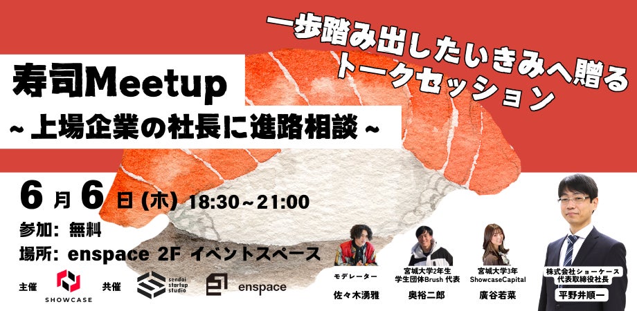 東北の学生向け進路相談イベント「寿司MeetUp~上場企業の社長に進路相談~」を、6/6(木)18:30~仙台市にて開催いたします!