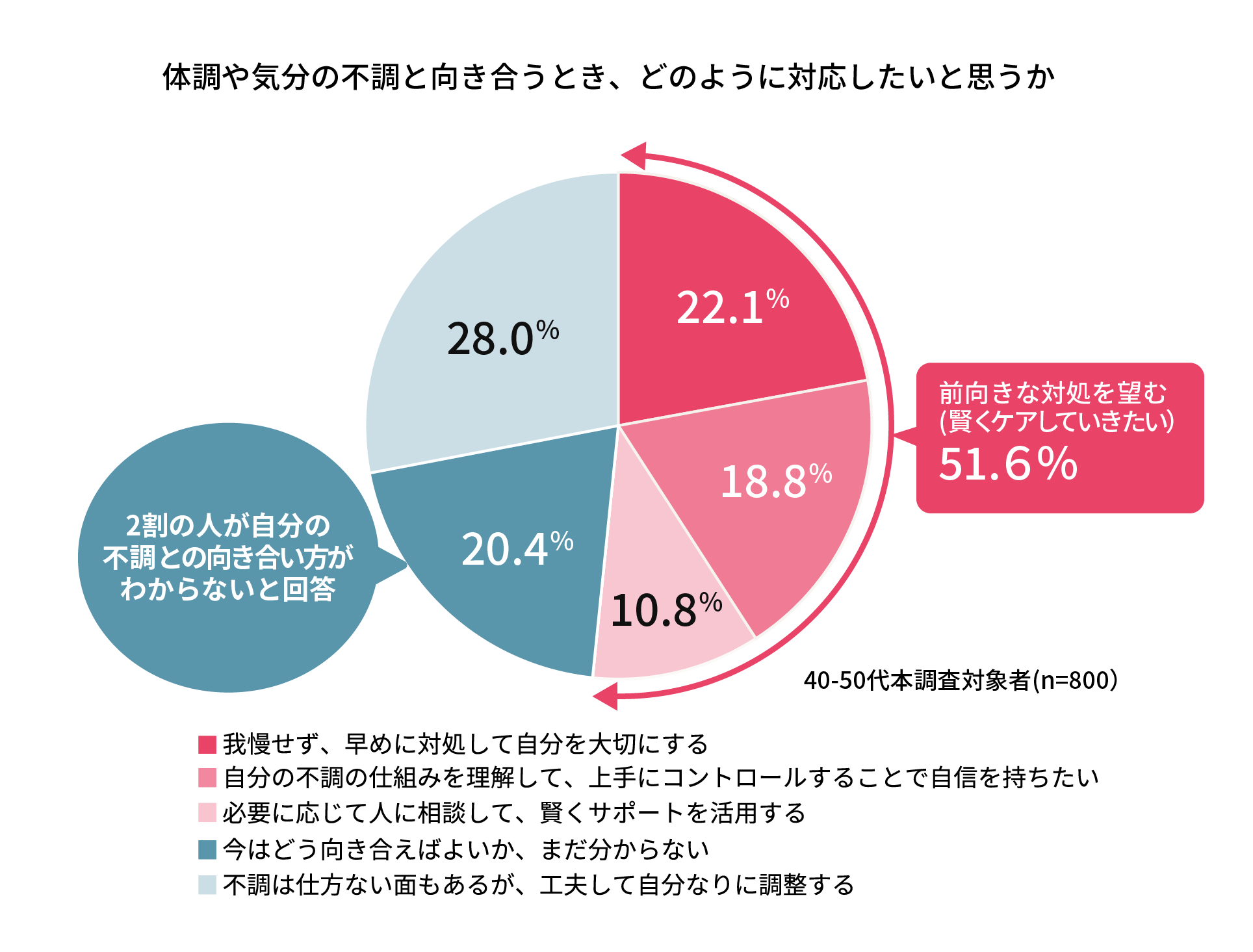 51.6%の女性は「体調や気分の不調に前向きに対処したい」と回答