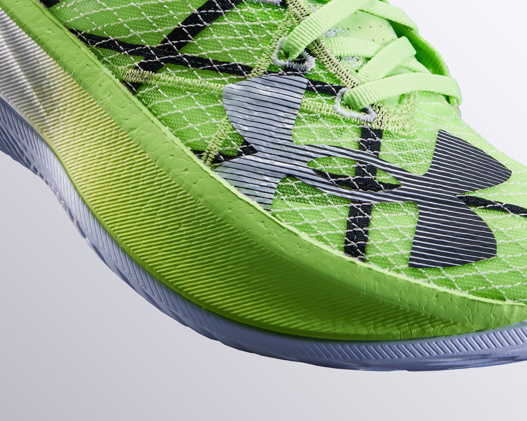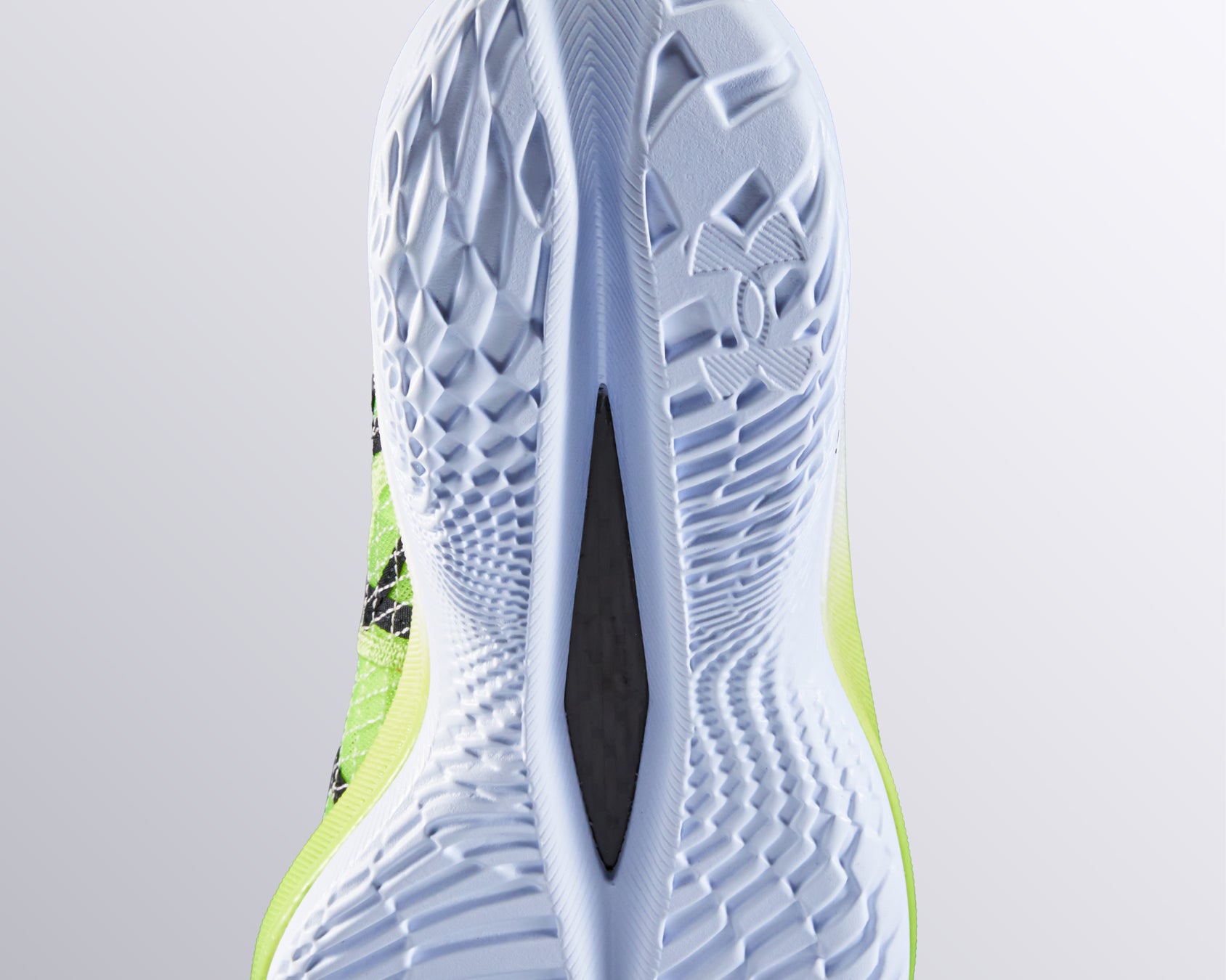 アンダーアーマー独自のラバーレスソールが軽量化と今までにない自然な接地感覚を実現しながら、前足部のソール厚は20%以上増量。さらに前足ソール幅を広げることで、アンダーアーマー史上最高のエネルギーリターンを成し遂げ、スピードランナーが求める「反発」を最大化しました。