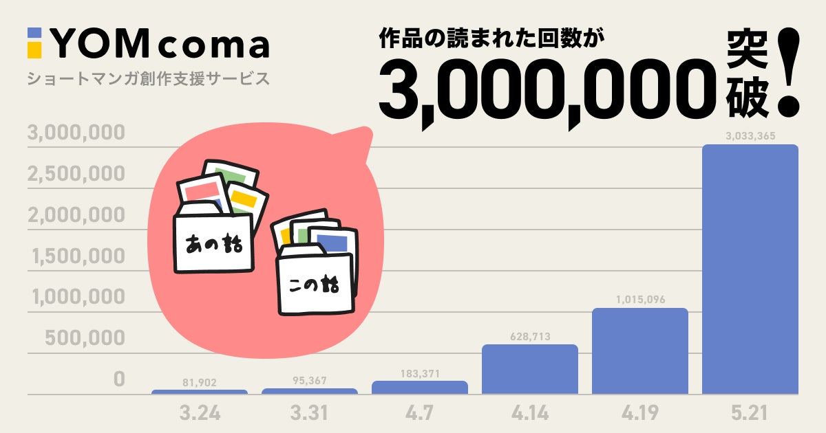 ショートマンガ創作支援サービス「YOMcoma」β版、作品の読まれた回数が合計300万件を突破