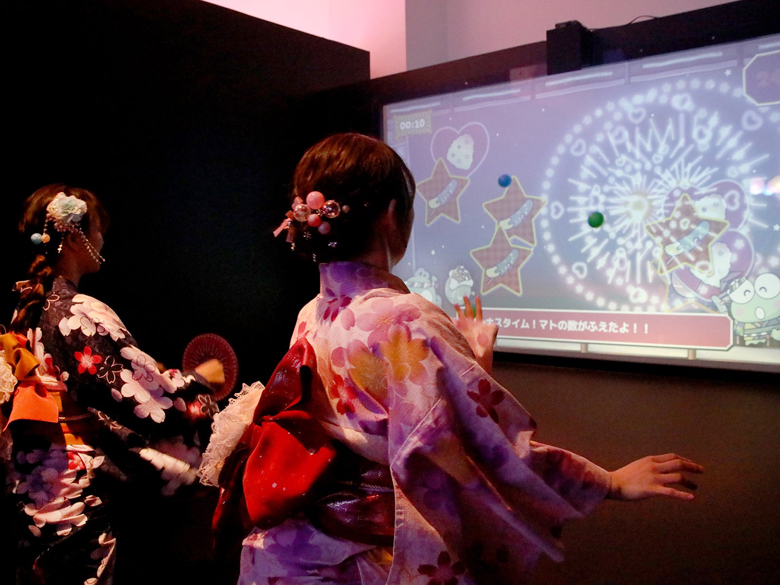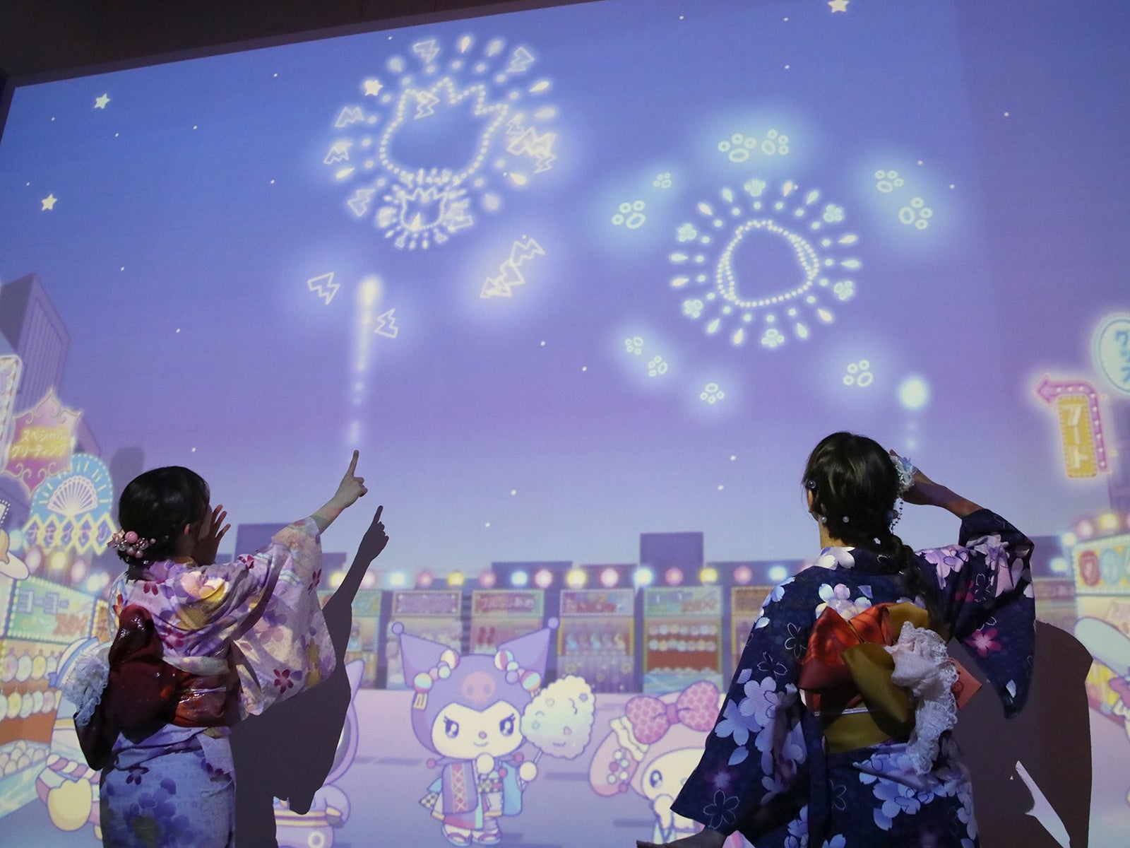 今年は体験型インスタレーションフォトスポット「WA☆SHOWI ! 打ち上げハナビ」が初登場。特定の場所に立つと、かわいい花火が打ち上がって、キャラクターたちと一緒に花火大会を楽しんでいるような体験が出来ます。
