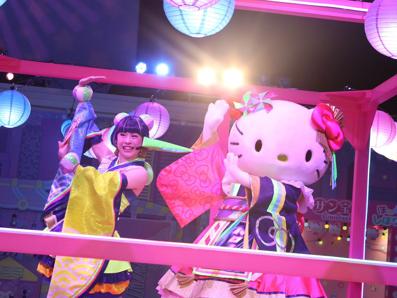 みんなで「ネオボンオドリ」を覚えて、「WA☆SHOWI!(ワッショイ!)」と掛け声をかけながら、サンリオキャラクターたちと一緒にダンスを踊って楽しむイベントです。日替わりで出演キャラクターが変わるのもお楽しみポイントの一つ。この日はハローキティが登場し、会場を盛り上げました。キャラクターたちと一緒に踊って、撮影会をして“夏の思い出”を作ることのできるコンテンツになっています。