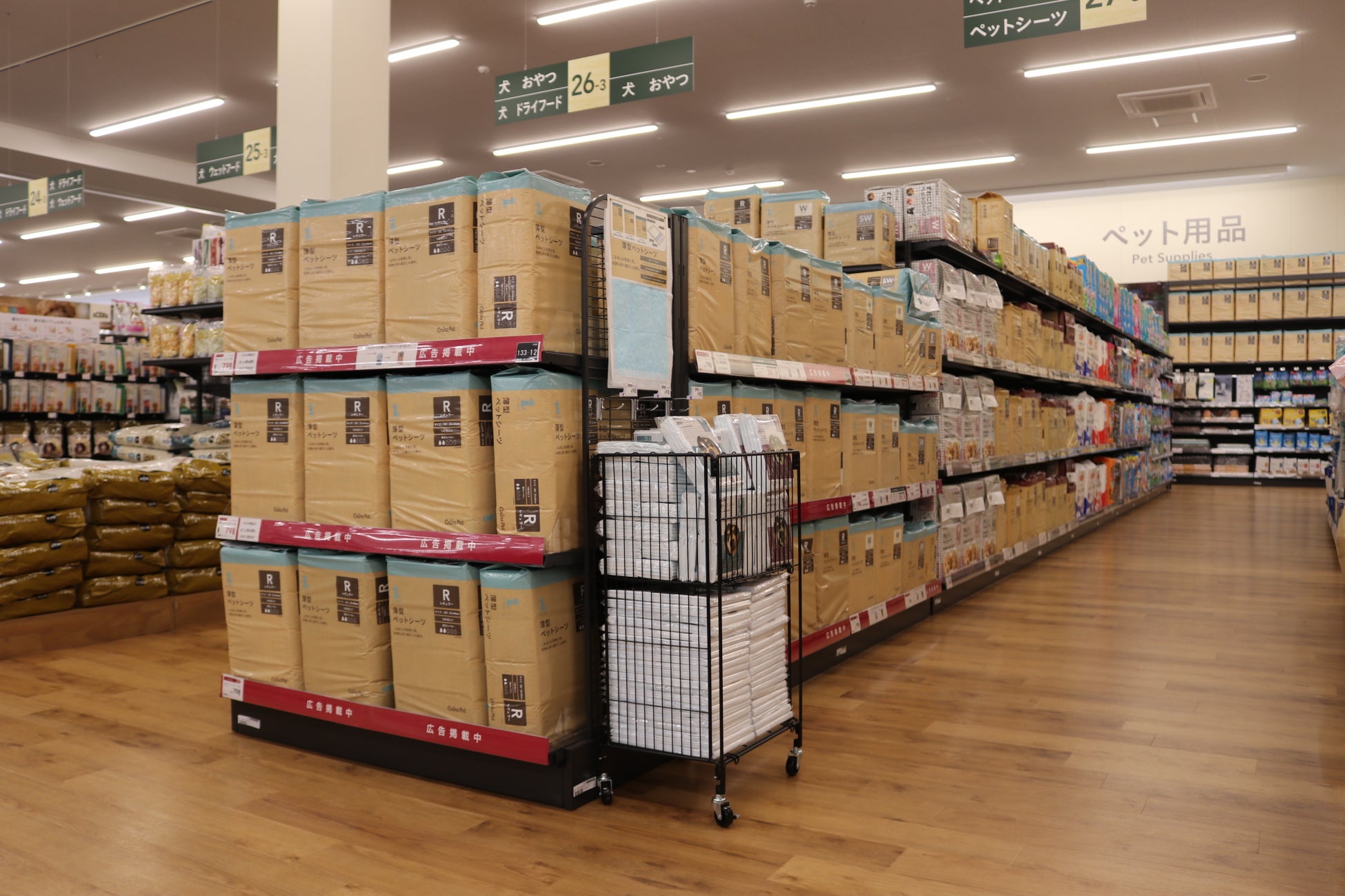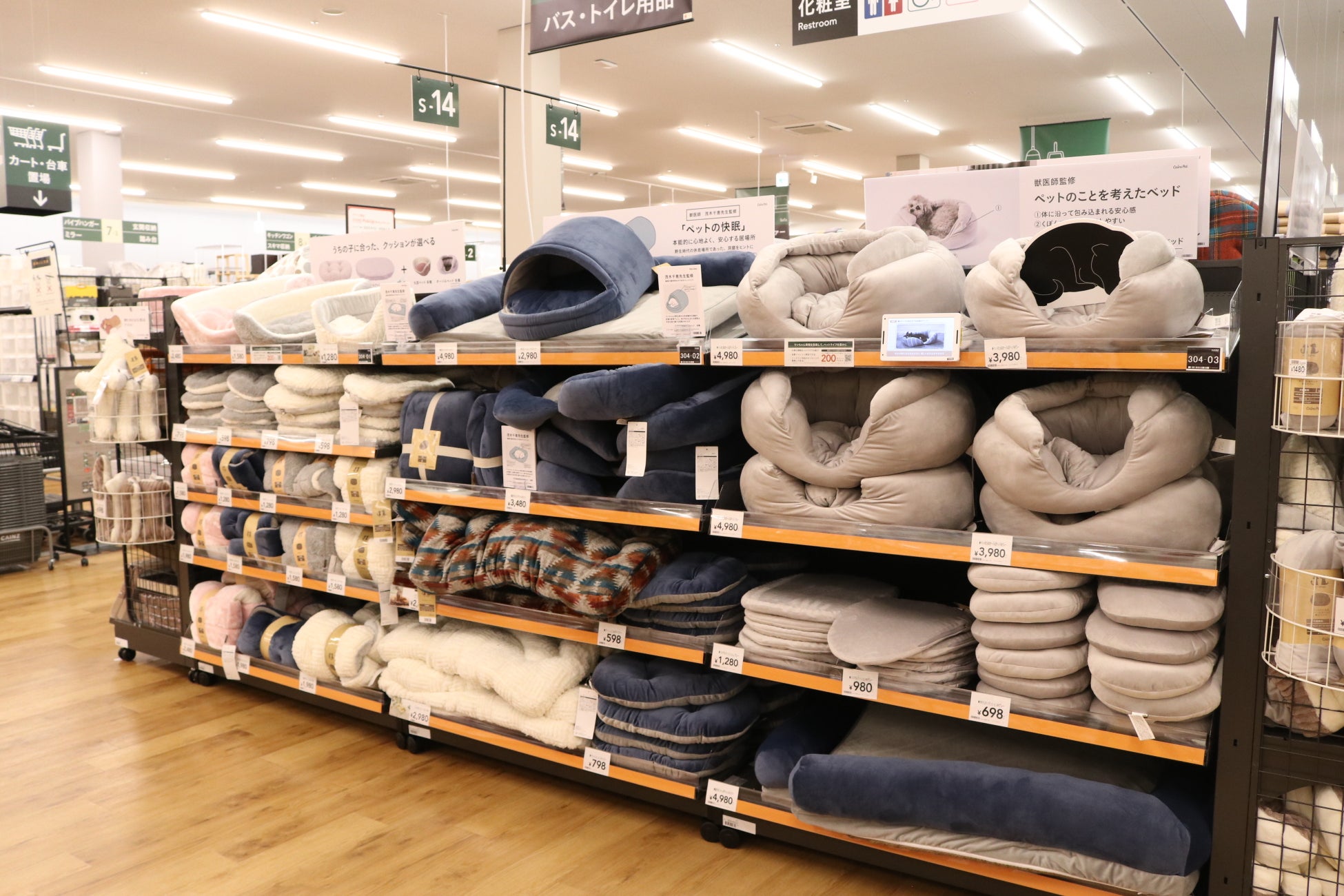 ペット用品売場では、汚れや菌がつきにくく、抜け毛が絡みにくいなどの機能を備えたラグやクッションを種類豊富にラインアップ。ペットとの快適なくらしをご提案します。ペットシーツなどの消耗品やごはんなど、いつものくらしにかかせないアイテムも種類豊富に取り揃えました。