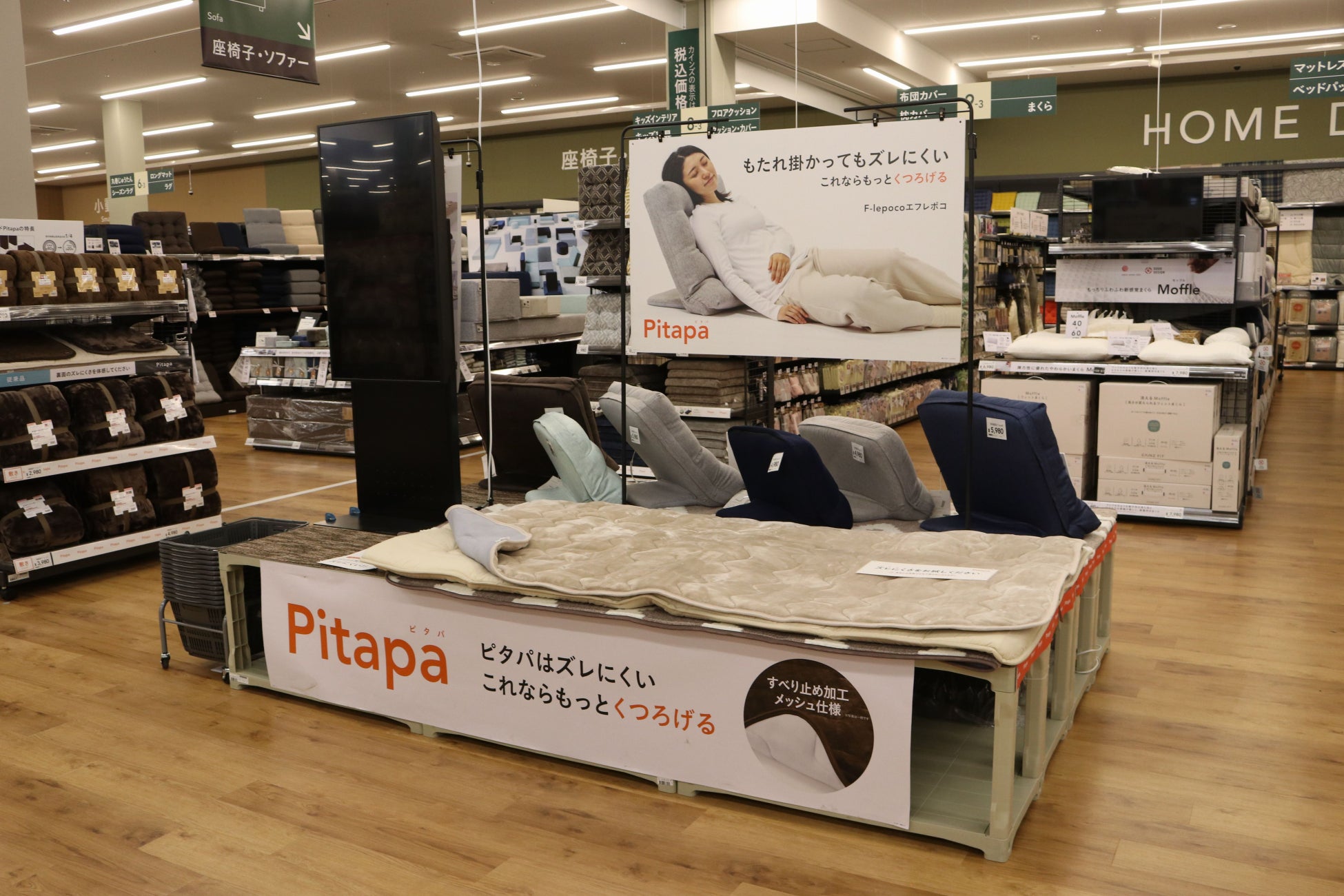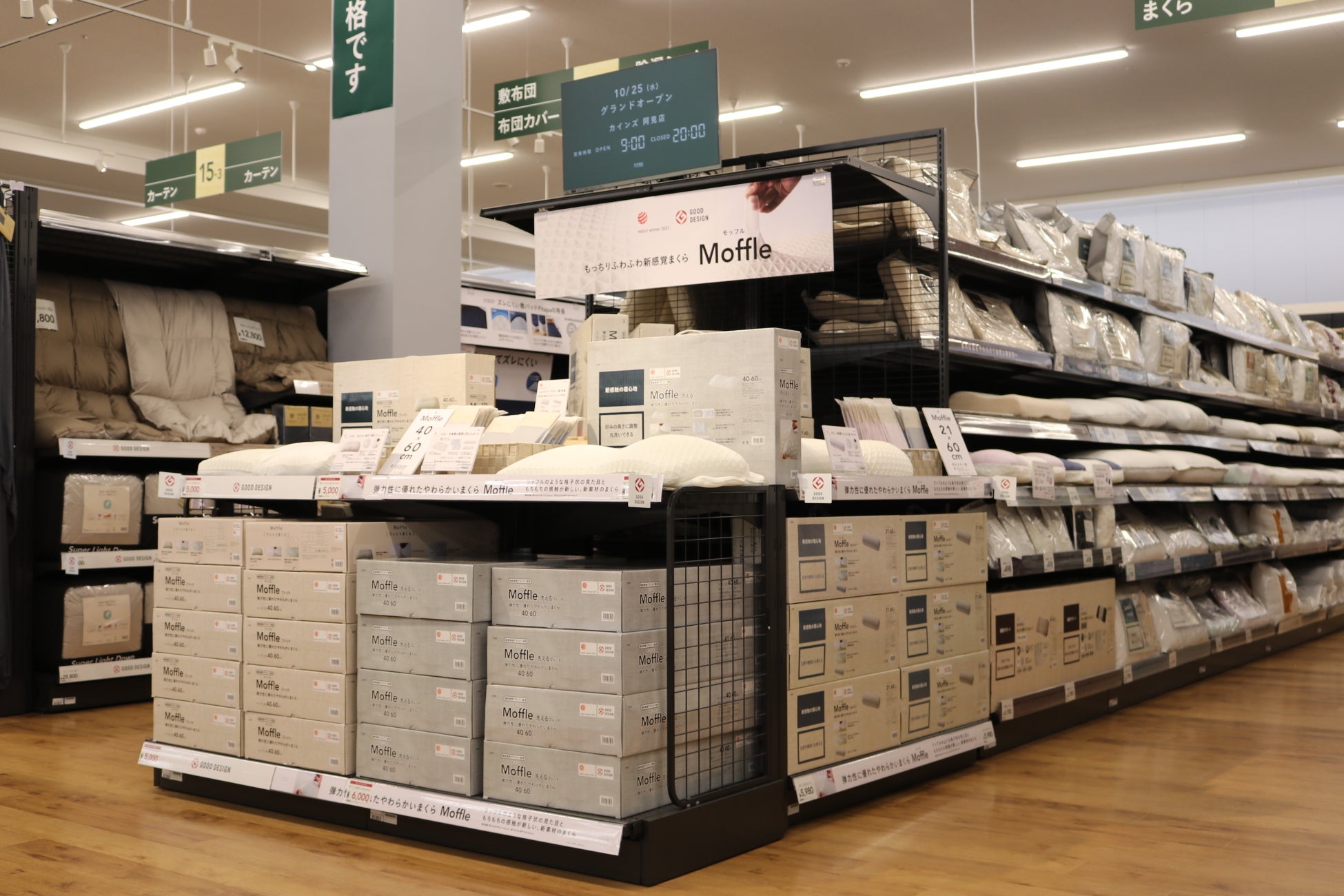 滑り止め加工でズレにくい「Pitapa」の敷きパッドやラグ、もっちりふわふわ感触の枕「Moffle」など、くらしの中にあるちょっとした不便や、何かが足りないという思いにお応えする、カインズらしいインテリア商品を幅広く展開しています。様々なライフスタイルのお客様に提案できるように展示商品も充実。その場で見て、触って、快適なくらしを想像いただけます。