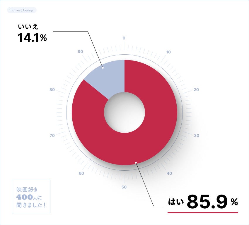 また、「好きなシーンはありますか?」の質問では、作品の代表的なシーンでもある「フォレストが走っているシーン」や、「ママがフォレストに向けて“人生はチョコレートの箱。食べるまで中身はわからない。”と伝えるシーン」、「ダン中尉との再会のシーン」が人気を集めました。