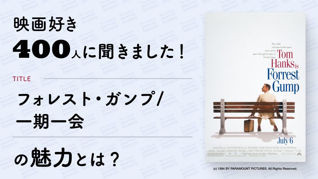 【映画好き400人にアンケート】映画『フォレスト・ガンプ/一期一会』の魅力とは?《Filmarks調べ》