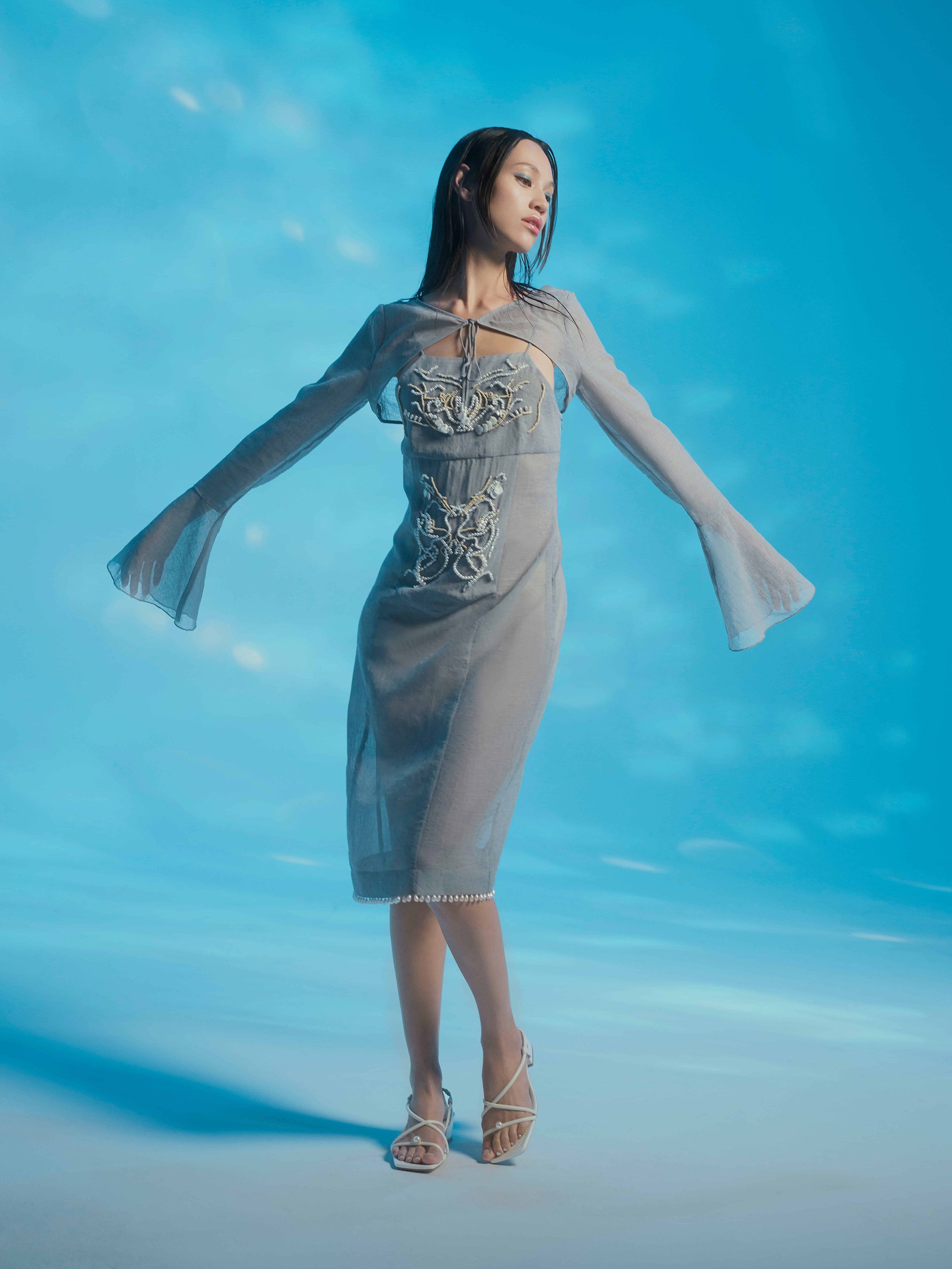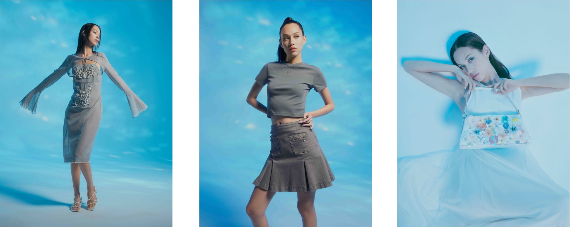 JILL STUARTは、水原さんがパワーを得ているという「海」の要素をモチーフに、シアーオーガンザドレス、シアーオーガンザブラウス、レースミックスキャミソールドレスの計3点を発売します。