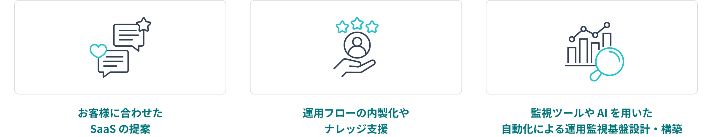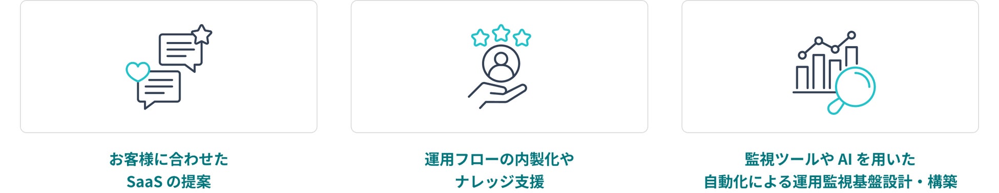 お客様のビジネスモデルや事業環境に適した SaaS の選定・導入・活用までを一貫して支援します。 Datadog や New Relic など、各領域に強みを持つパートナー企業と連携し、アイレットの運用ノウハウを組み合わせることで、最適な運用環境の構築を実現します。 |