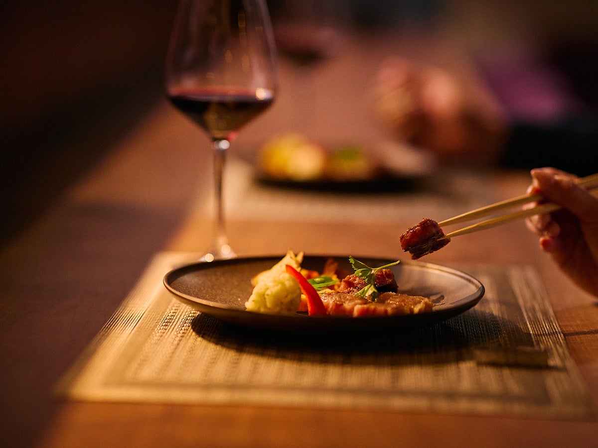 レストラン「夙夜 shukuya」からラウンジバー「夢寐 mubi」 で大人の夜を彩る時間を提供いたします。