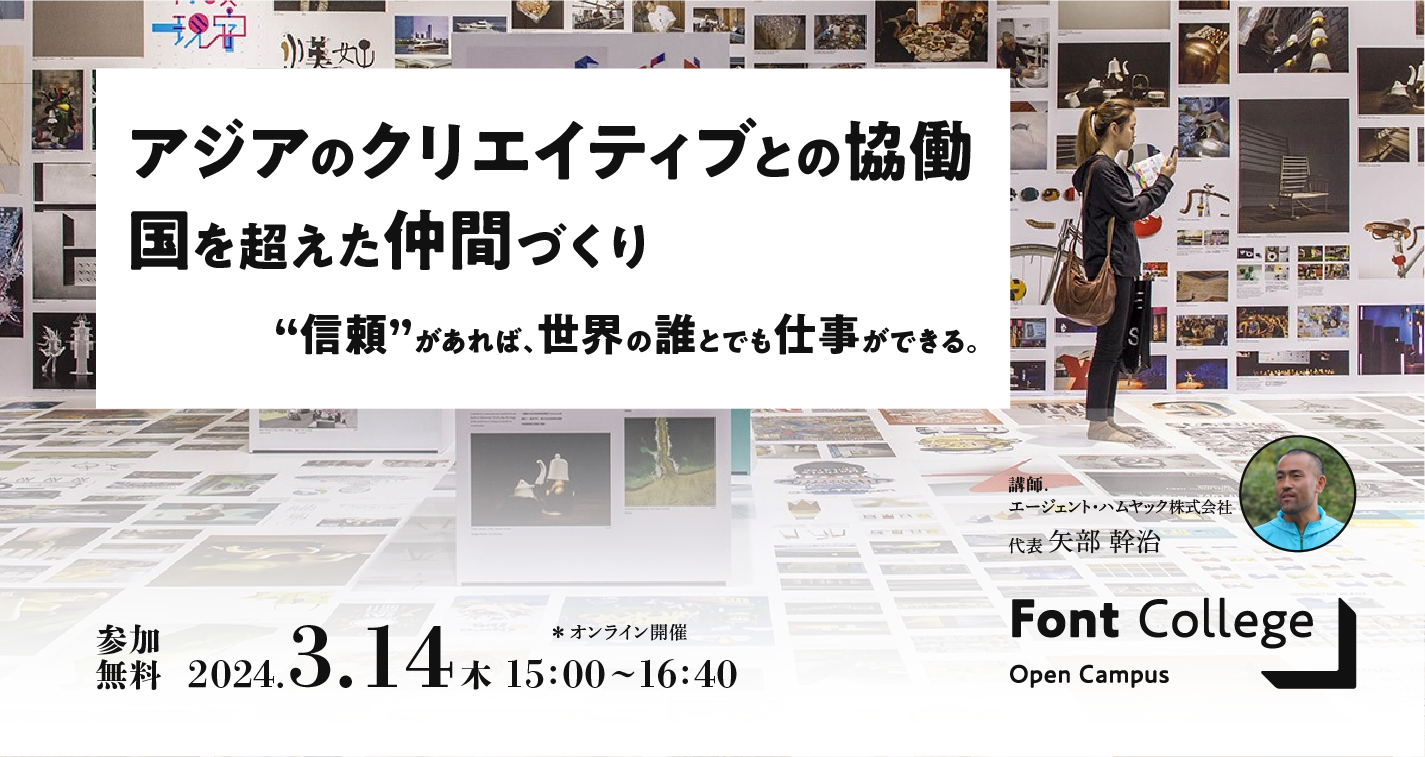 【オンライン開催】Font College Open Campus 13 「アジアのクリエイティブとの協働 国を超えた仲間づくり “信頼”があれば、世界の誰とでも仕事ができる。」