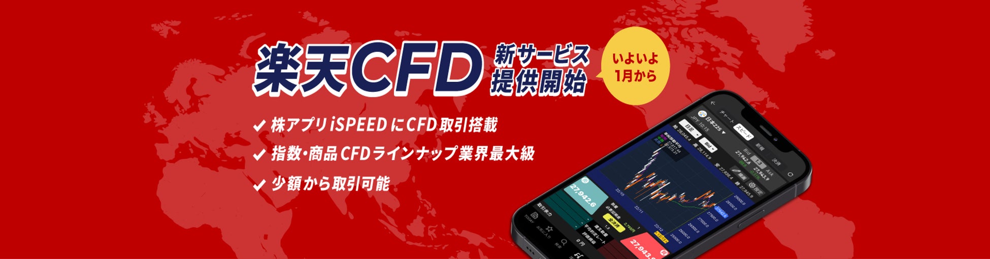 楽天証券は、2021年1月に、世界各国の株価指数やコモディティに、FX取引と同様にレバレッジを効かせ、証拠金の数倍の取引をすることができる差金決済取引、CFD取引サービスを開始しました。今回、新たに「iSPEED®」を利用した「楽天CFD」を開始することで、これまで以上に効率的・手軽にグローバル銘柄へ投資できる環境が整います。