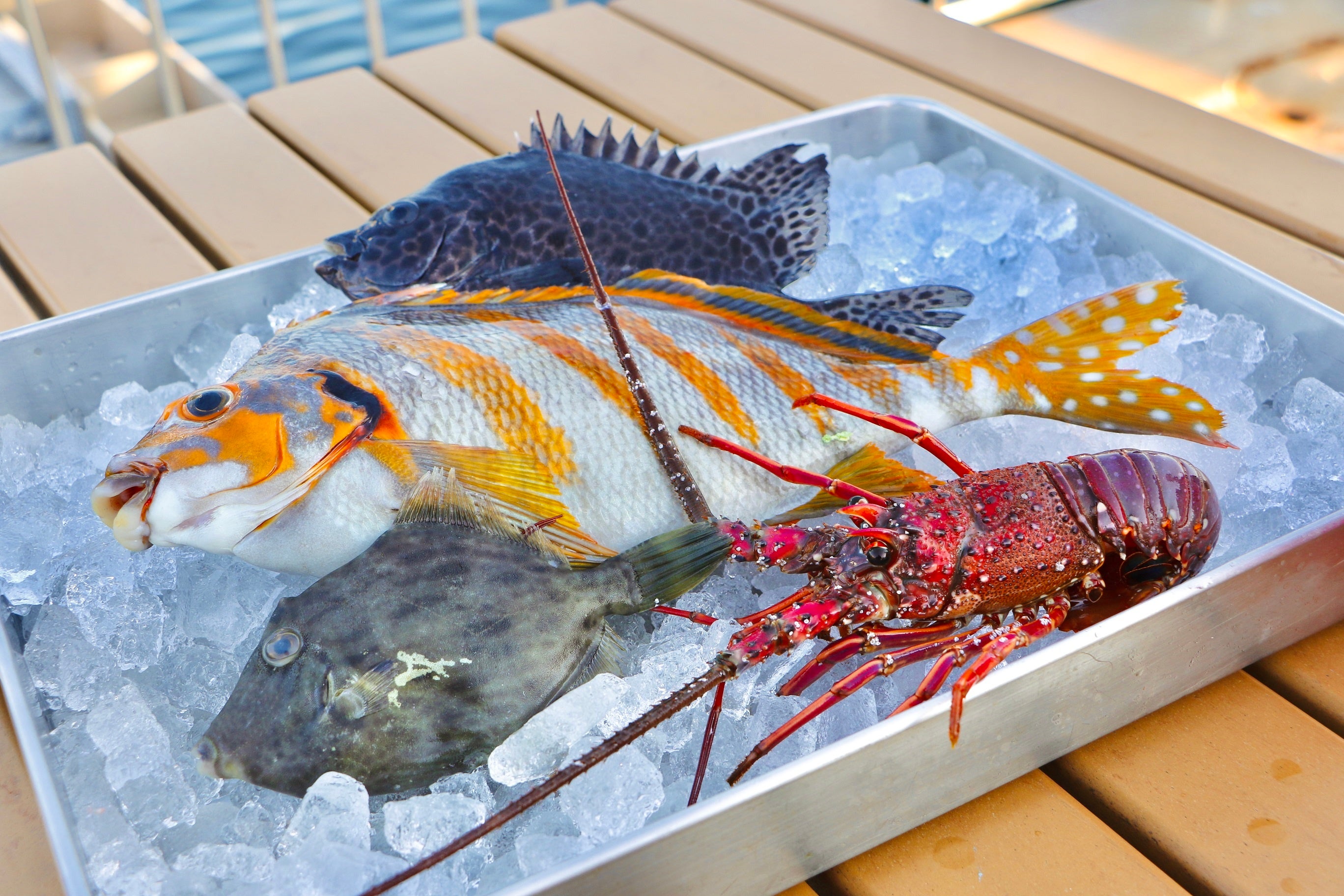 おさかなは島内の「Seafood & Grill YAKIYA」や「うみファームキッチン」にてグリルやフライでお召しあがりください。