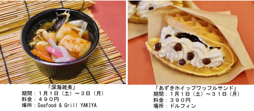| 期 間 : 1月1日(土)~1月6日(木) 料 金 : 1袋 1、990円 場 所 : うみファーム ※1月4日(火)以降の調理は「うみファームキッチン」のみとなります。 備 考 : 1日10袋限定 |