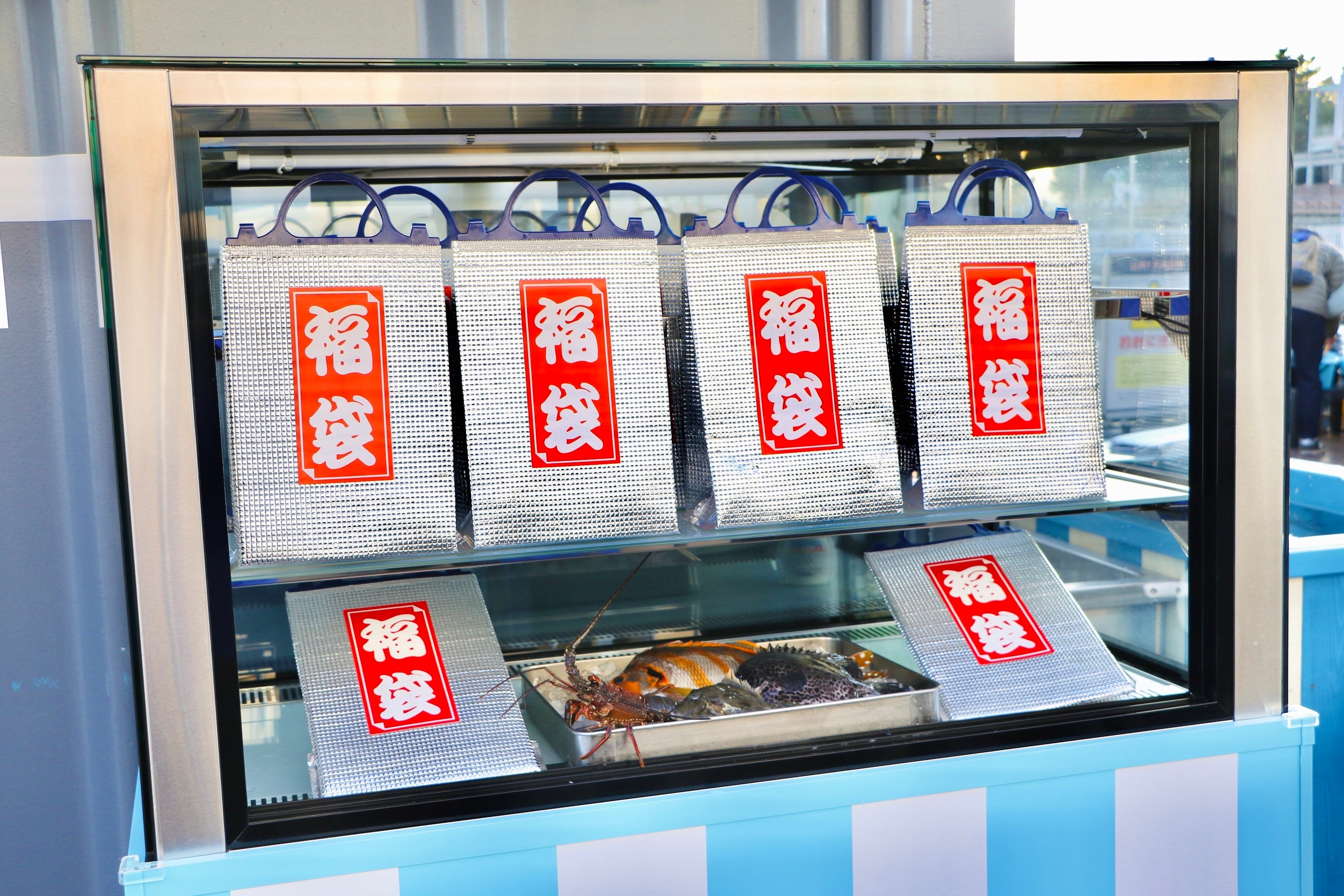 「おさかなマルシェ」では、新年限定で『おさかなマルシェ福袋』と題した福袋を1日10袋限定で販売いたします。半数の福袋にはなんとイセエビの当たり付き!新年の運試しにいかがでしょうか。