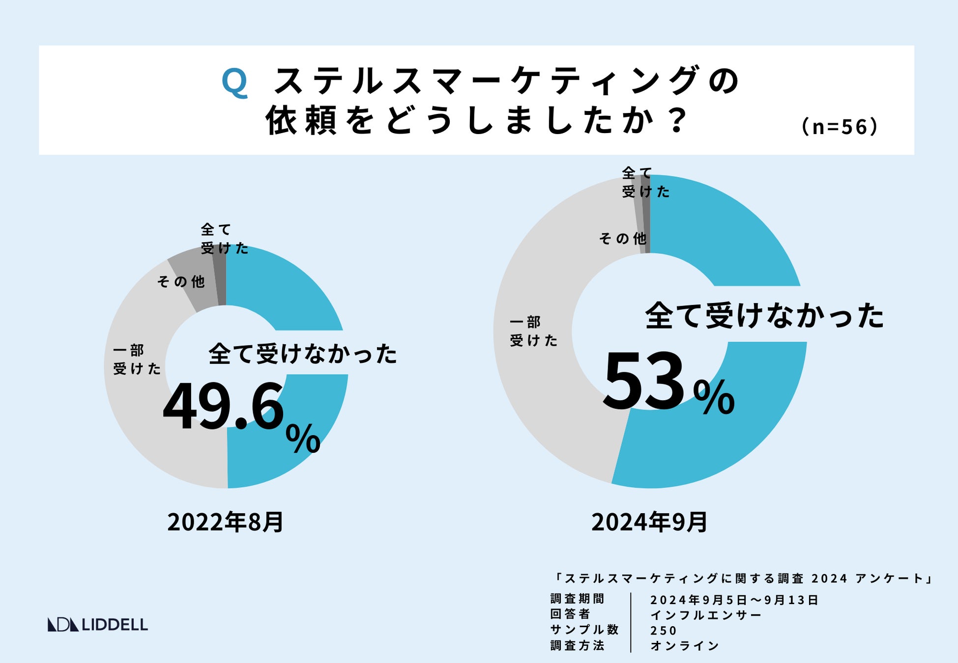規制後、ステマの依頼を「全て受けなかった」インフルエンサーは 53%