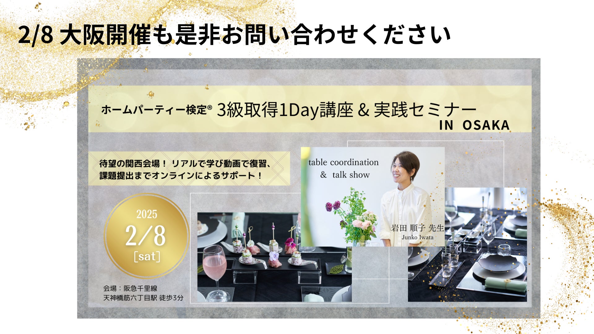 一般社団法人日本ホームパーティー協会(2012年設立)は、認定資格であるホームパーティー検定の東京リアル開催イベントを2025年3月に開催いたします。人気認定講師の実演を見られるチャンスです!
