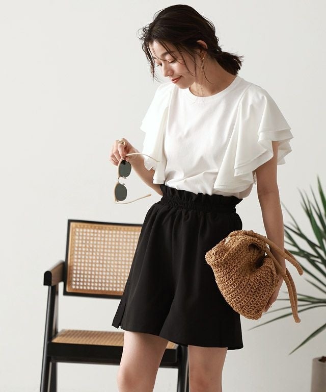 ウエストはフリルを施すことで、気になるお腹周りのカバーをしながらも、しっかりホールドしてくれる安心感のあるゴム仕様!