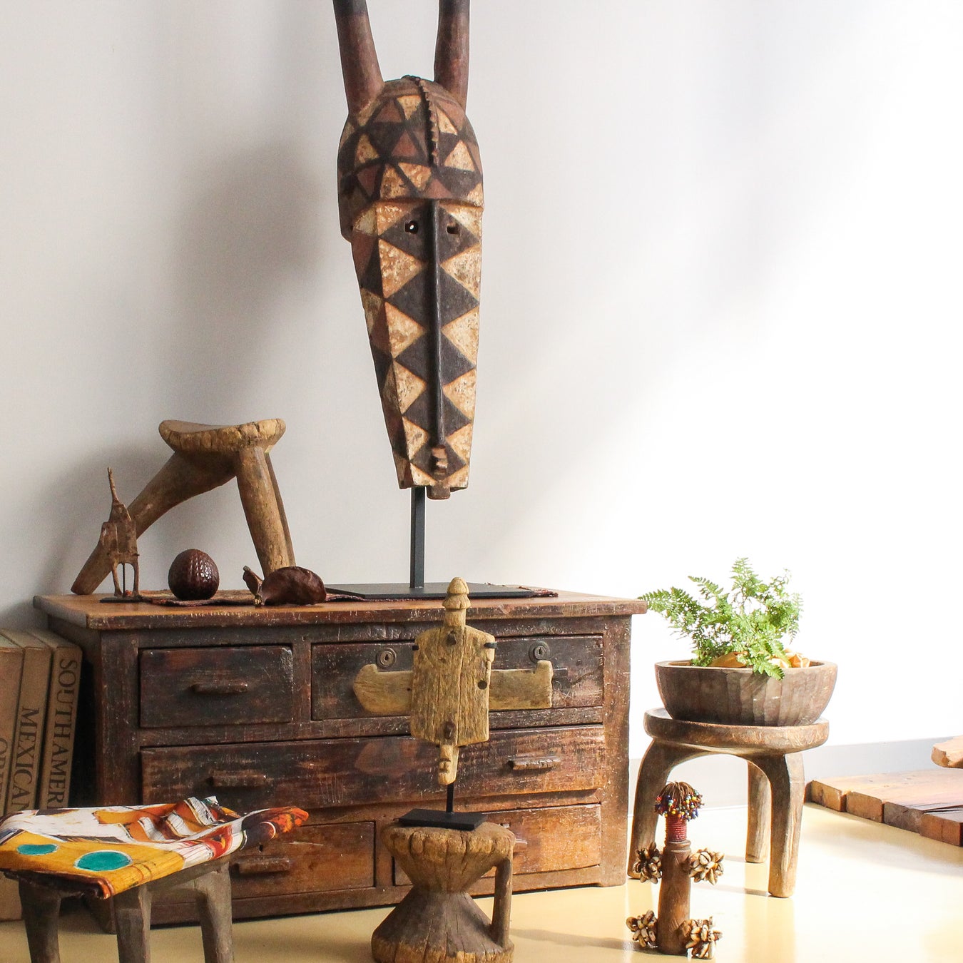 ●colophone folk artは、アフリカで培われてきた多様な文化とそのストーリーを感じる展示を企画し、西アフリカを中心としたフォークアート(土地固有の文化から生まれたアート)・トライバルアート(先住民族の式典にて使用された盾やお面、貨幣、アートなど)・作家作品・装身具などを紹介します。代表の丸山有紀子が直接現地へ赴き一つ一つ選んだ、伝統と感性が織りなす唯一無二な作品を包括的に提案します。