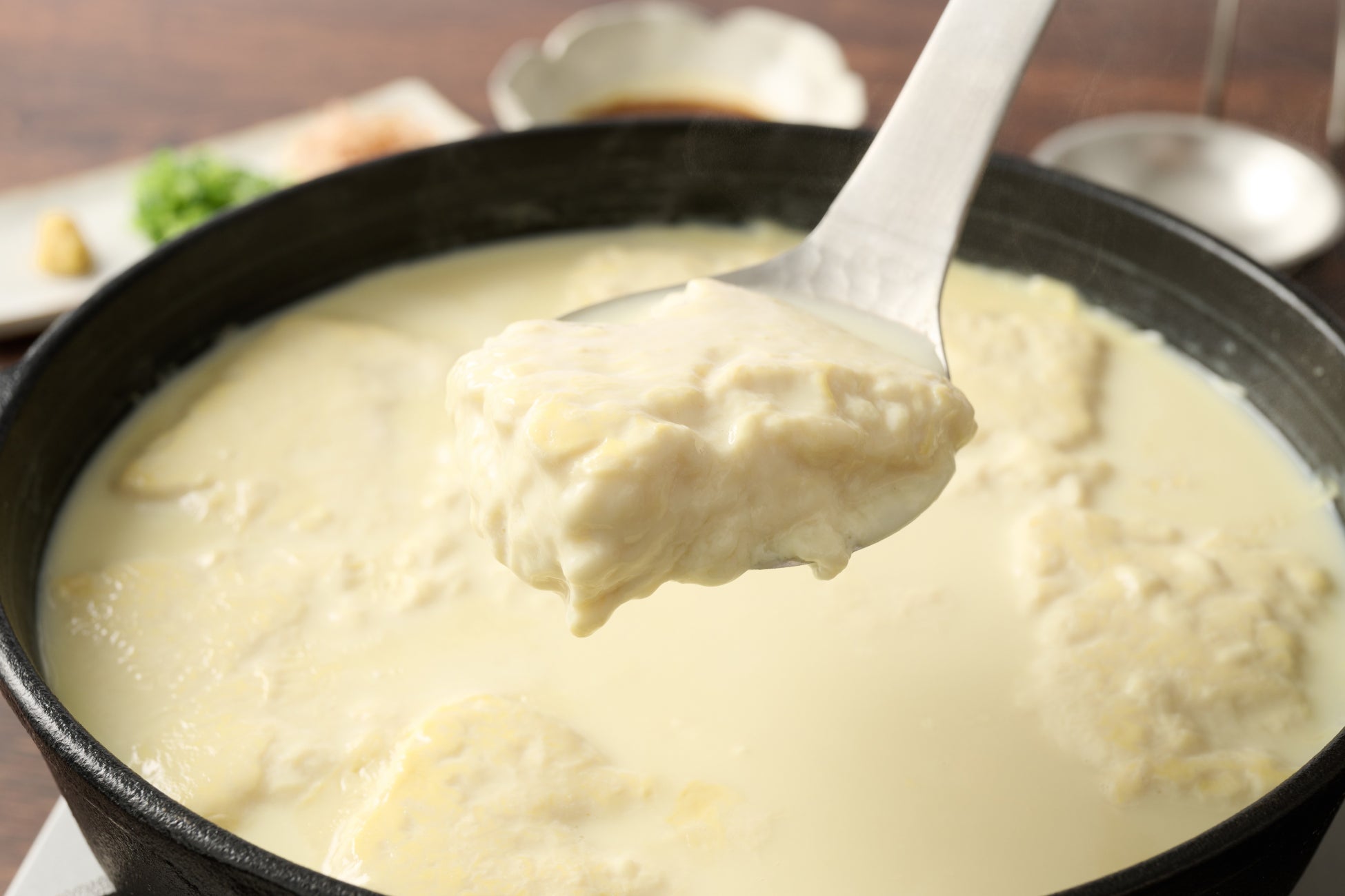 豆乳に葛とでんぷんを加え、もっちりプルンとした食感が特徴。食事だけでなくスイーツとしても楽しめる。