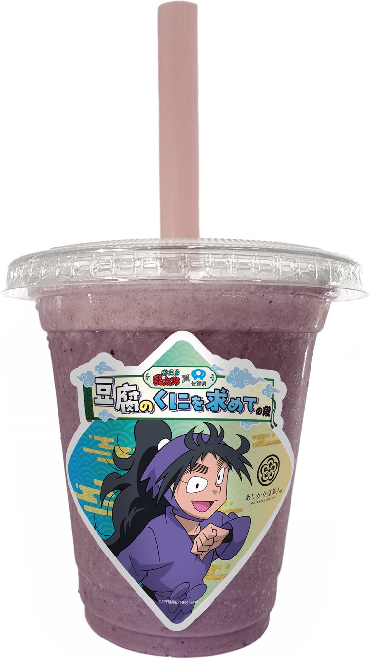 今回発売される新商品は、久々知兵助が在籍する五年生の制服カラーをモチーフに、佐賀県産の大豆・フクユタカと佐賀県小城市で栽培されたブルーベリーをふんだんに使用したコラボスムージー。