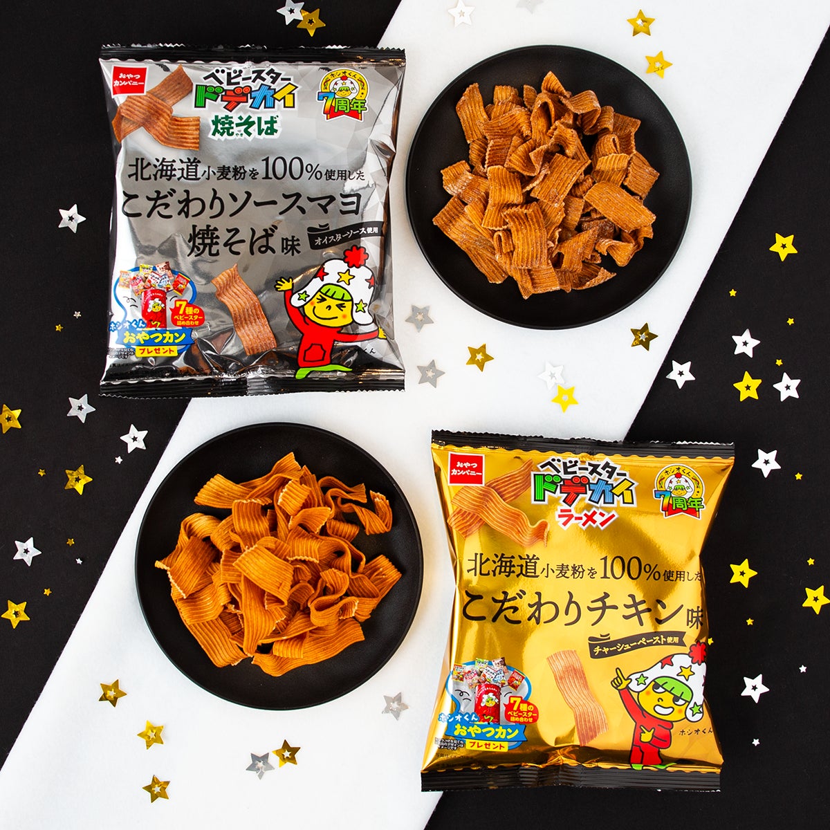 そして2024年3月11日(月)より、ホシオくんデビュー7周年記念商品 第2弾として、北海道小麦粉を100%使用した『ベビースタードデカイラーメン(こだわりチキン味)』『ベビースタードデカイ焼そば(こだわりソースマヨ焼そば味)』2品を全国にて期間限定発売します。
