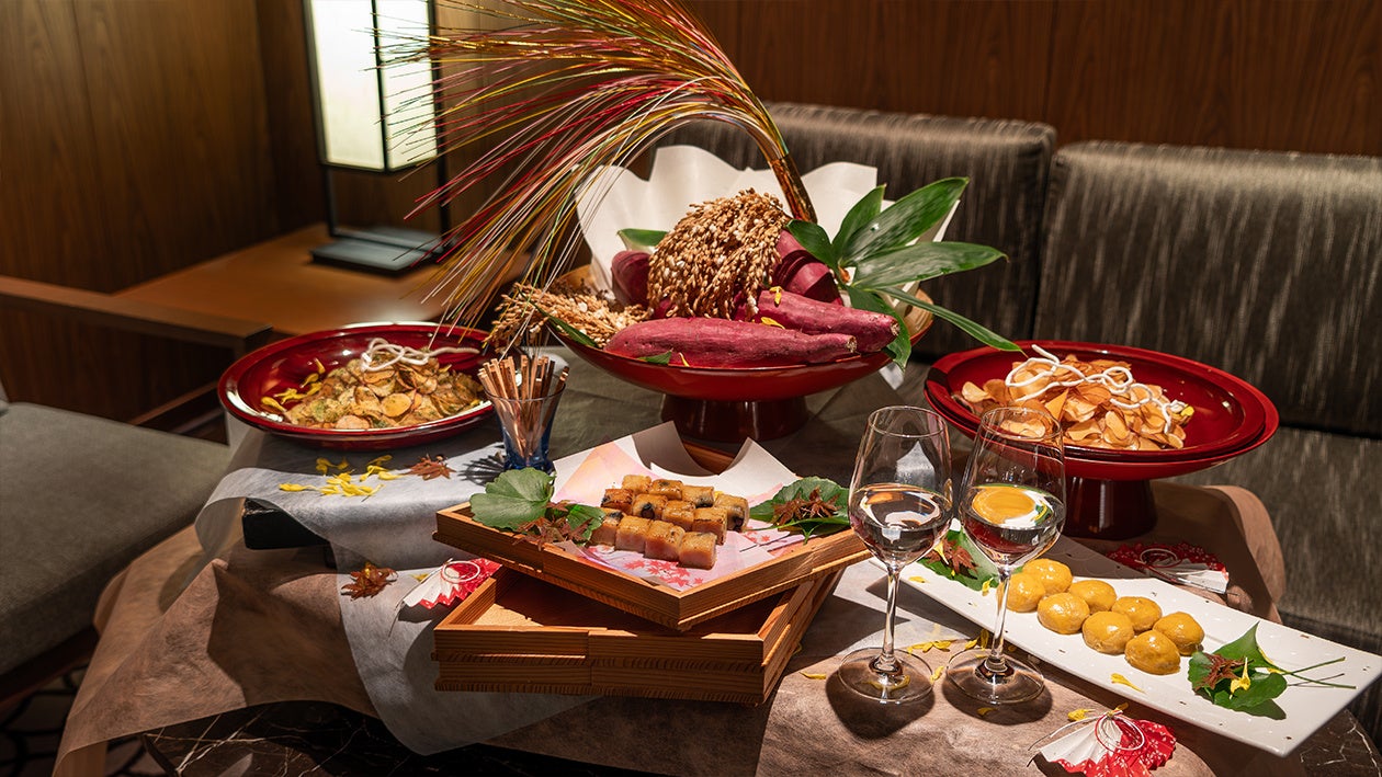 食欲の秋にふさわしいお芋料理と日本酒のペアリングで、当ホテルならではのお月見体験をお楽しみいただけます。