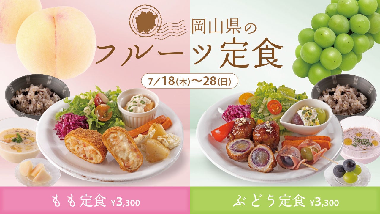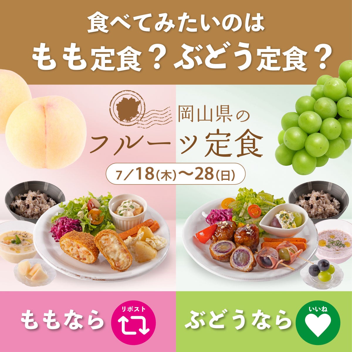 \どっちが食べたい?フォロー&リポストキャンペーン/「晴れの国おかやま・フルーツ食堂~もも定食・ぶどう定食~」7月18日(木)より期間限定提供&SNSキャンペーン開催