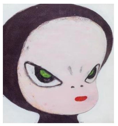 奈良美智《Untitled》《黒頭巾》2点とも1996年©︎Yoshitomo Nara