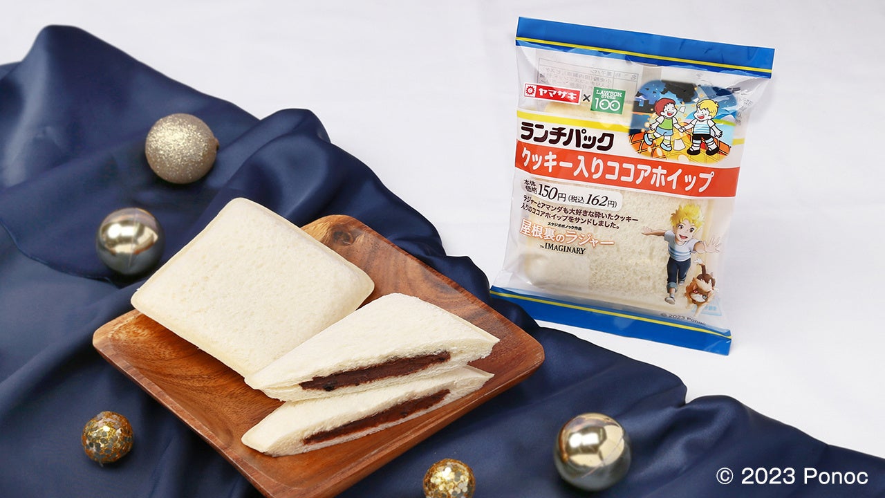 商品特長:ラジャーを生み出した少女アマンダと母親リジーをむすぶアイテム「クッキーとココア」から連想したクッキー入りココアホイップをサンドしたオリジナルランチパックです。