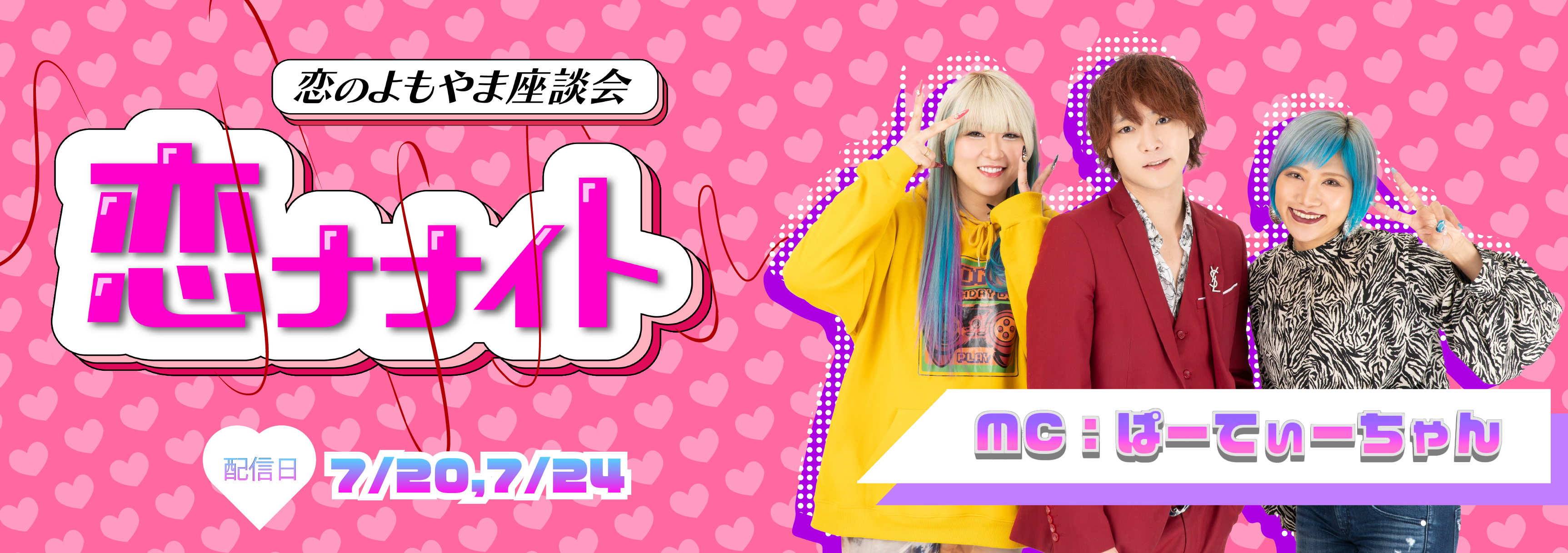 第二弾として配信する『恋のよもやま座談会“恋ナナイト”』は、「恋愛」をテーマに、お笑い芸人として若者を中心に人気を集めている「ぱーてぃーちゃん」が、ライバーやリスナーが抱える恋愛にまつわるさまざまな悩みやエピソードを引き出します。MCや出演ライバーの経験談なども交えながら忖度なしに語り合う賑やかなトークをお届けする予定です。