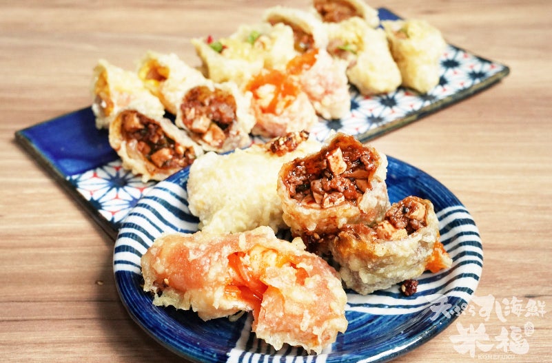 米福の原点である「米油」だけで揚げた、サクサクあっさりの美味しい天ぷらは変わらず、うまさを追求。天ぷらの新しいカタチとして新鮮なお刺身をレアの状態でそのまま閉じ込めた「おさしみ天」、中からジューシーなおかずが飛び出してくる「おばんざい天」などもご提案。