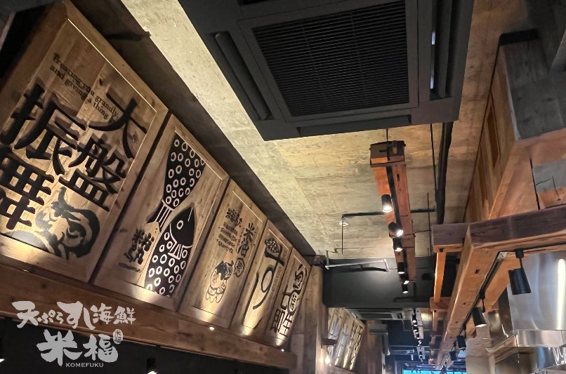 『天ぷら海鮮 米福』は京都烏丸で12年、ランチタイムは地元の方々や、ディナータイムには京都観光やショッピング帰りの国内外の観光客の皆様にご利用頂いており、この度、新たに店舗を拡大し、『天ぷら寿司海鮮 米福』として移転オープンする運びとなりました。烏丸駅から徒歩2分に位置する当店は、古材を使用した温かみのある店内で、天井は高さ3500mm、広さは旧店舗の2倍と、広々とした開放感のある空間で、ゆっくりと自慢の料理とお酒などをお楽しみいただけます。