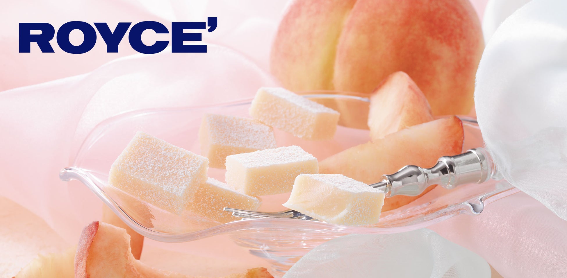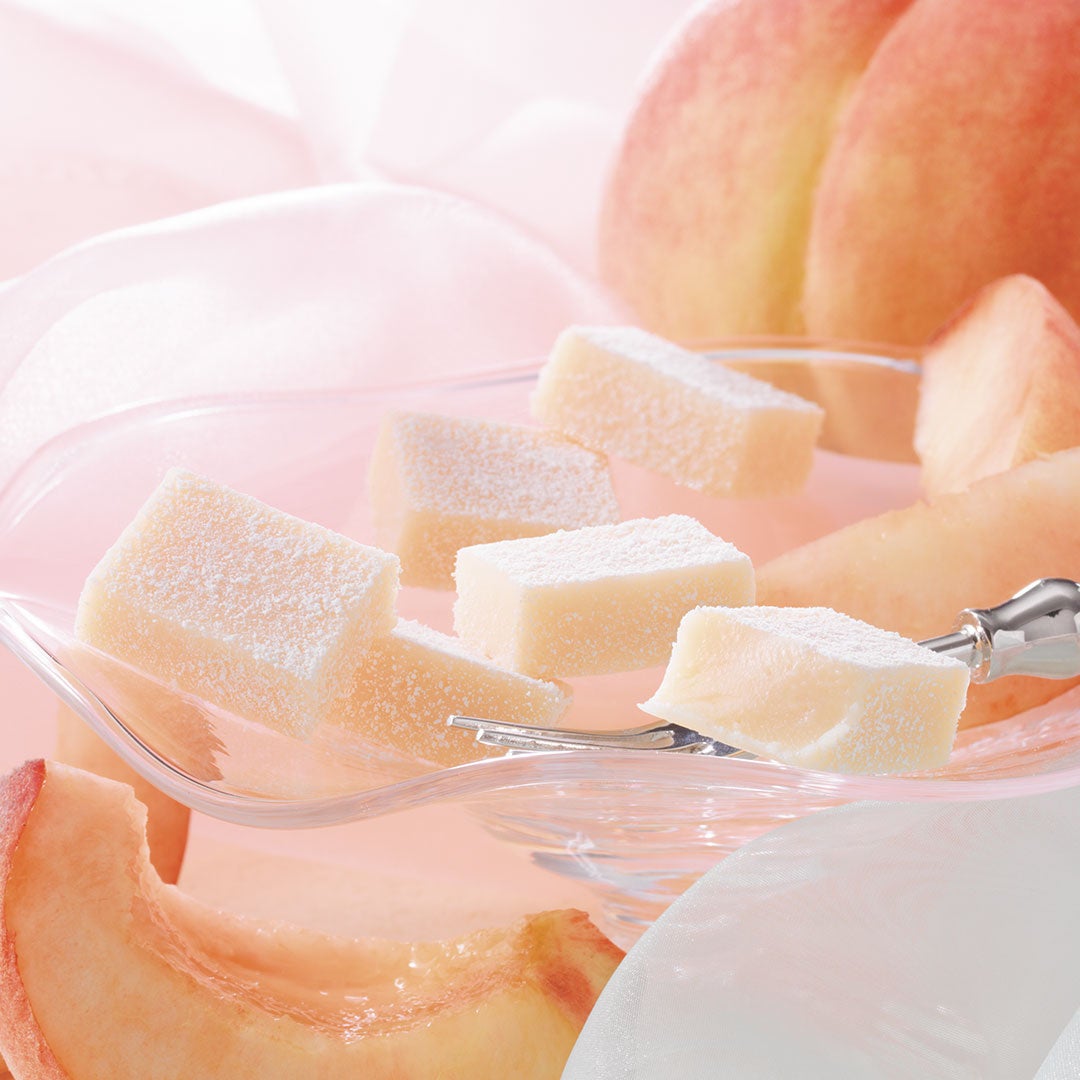 白桃のやさしい甘さとほのかな酸味がホワイトチョコレートのまろやかな甘さととけ合います。