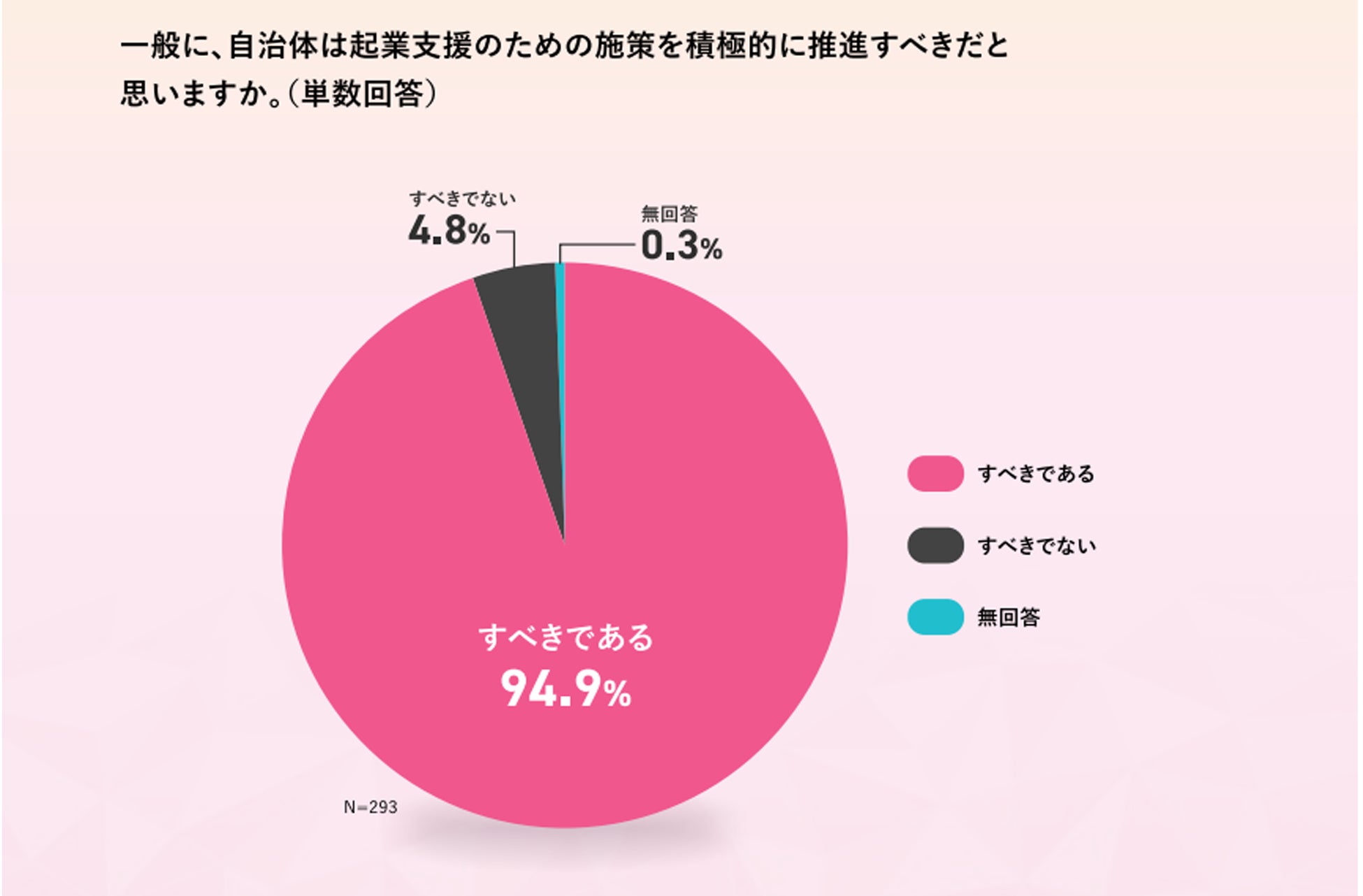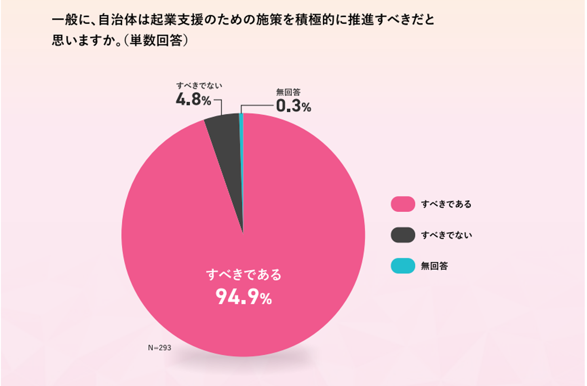 9割以上の自治体が「起業支援を積極的に推進すべき」と回答