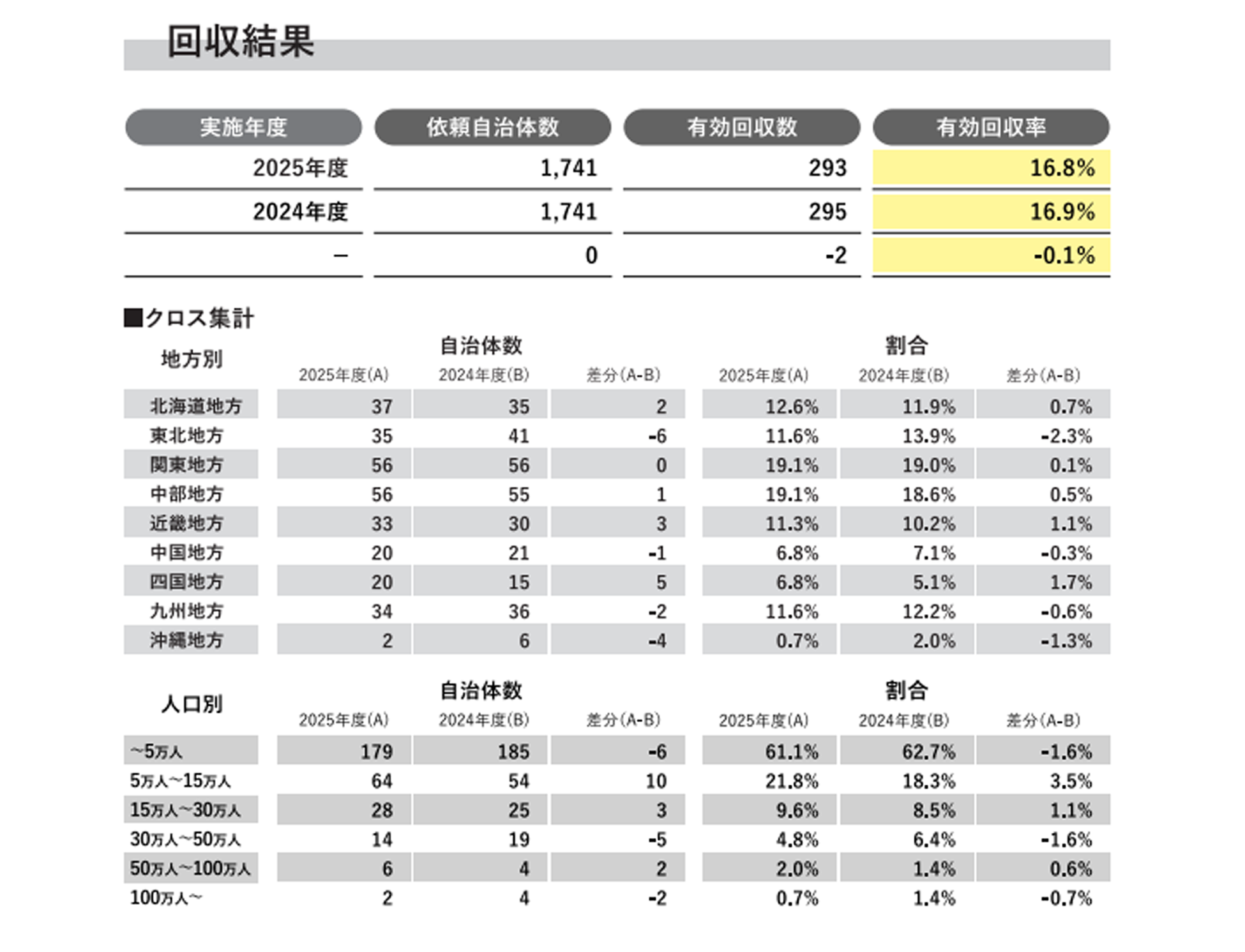 調査対象 :地方自治法における普通地方公共団体に定められた1,718市町村及び特別区23を加えた1,741自治体