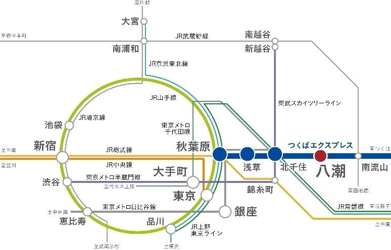 ※つくばエクスプレス「八潮」駅から「秋葉原」駅へ直通20分<18>分:つくばエクスプレス区間快速利用。日中平常時も同じ。/「東京」駅へ33分<32分>:つくばエクスプレス区間快速利用、「秋葉原」駅でJR山手線に乗換え。日中平常時も同じ。※記載の所要時間は通勤時、<>内は日中平常時のもので時間帯により異なります。また乗換え待ち時間を含みます。「Yahoo!路線情報」調べ(2023年7月時点)