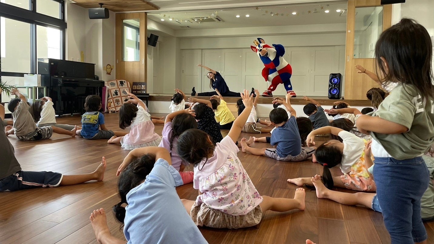 今回訪問した園では、キングスやゴーディーにまつわるクイズと、ストレッチやダンスを通して身体を動かすことの楽しさを体験しながら、園児たちと交流を深めました。また、園内には子どもたちが描いたゴーディーのぬりえなどが展示されており、温かくゴーディーを迎えていただきました。