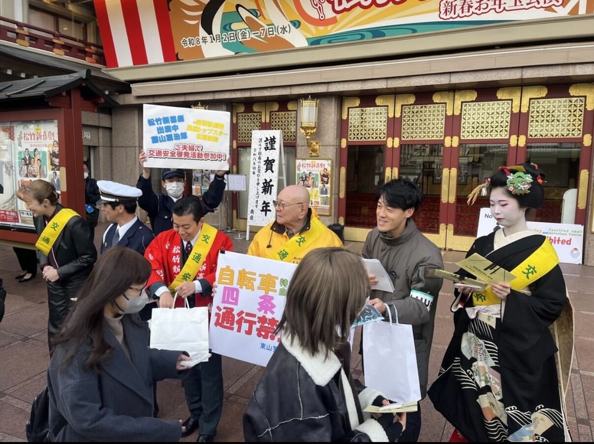 株式会社Luup(本社:東京都品川区、代表取締役CEO:岡井大輝、以下「Luup」)は、京都府警察東山署などとともに、自転車と特定小型原動機付自転車による四条通の通行禁止に関する啓発活動を2026年1月6日(火)に実施しました。