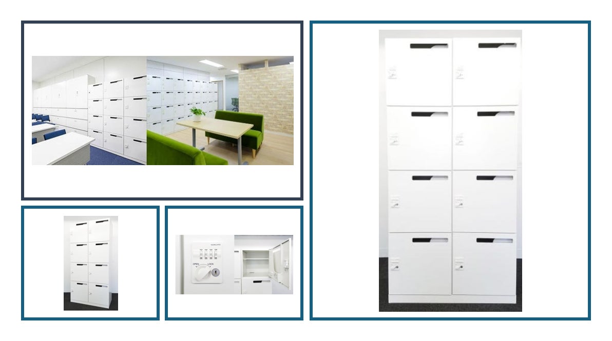 ノートパソコンやA4ファイルをしっかり収納できるタイプが多く、個人用の省スペース型ロッカーとして機能します。投入口付は、不在時にも社内のメール便などの書類を扉表面から投函できるため大変便利です。